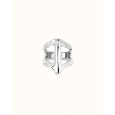 Estructura, actitud y presencia.Este anillo bañado en plata combina fuerza y fluidez con un diseño abierto que juega con el espacio y la forma.Su estética arquitectónica, con líneas firmes y vacíos pronunciados, da lugar a una joya potente, perfecta para marcar estilo sin decir una palabra.Pertenece a la colección Ser Majestuosa, creada para mujeres con energía propia y una elegancia que nace de su autenticidad.Fabricado artesanalmente en España, como todas las piezas con alma.