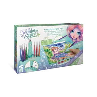 Pinta como una profesional – Usa el aerógrafo eléctrico para crear efectos suaves y uniformes en tus dibujos. Fácil de usar – Inserta el rotulador en el bolígrafo recargable y pulveriza la pintura sobre las imágenes con precisión. Incluye plantillas y pegatinas – Crea diseños únicos con las plantillas de estarcido y pegatinas de enmascaramiento. Diversión creativa – Perfecto para proyectos de arte, ilustraciones y personalización de tus creaciones. Materiales de calidad – Incluye acuarelas y un rotulador de goma de enmascarar para efectos especiales., Fabricante: NEBULOUS