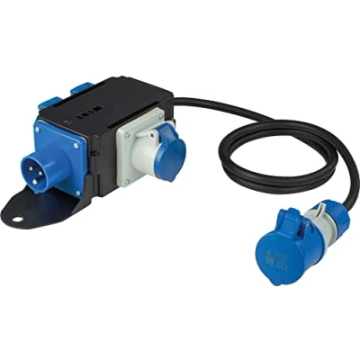 Carcasa de plástico especial irrompible Diseño versátil que ahorra espacio, universal, móvil y robusto Entrada: 1 enchufe CEE Salida: 1 toma de corriente CEE con cable de 5 pies H07RN-F 3G1.5 1 salida CEE (230 V, 16 A, 3 pines hembra y 2 tomas de seguridad 230 V/16 A. Adecuado para uso en exteriores, Peso: 2.20462262 Libras, Fabricante: as - Schwabe
