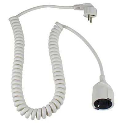 as Schwabe Cable en Espiral, Espiral Extensible de 1 m a 2,5 con Enchufe Contacto protección, 230 V, extensión 16 A, IP20, Blanco, 70412