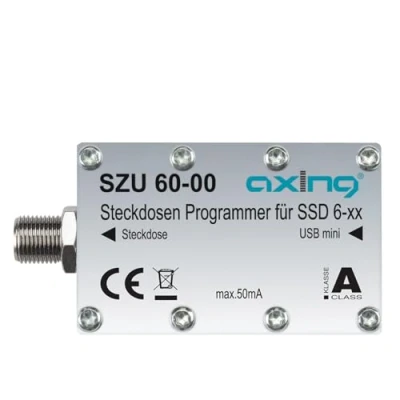 Para programar el usuario de bandas a axing enchufes para cables de satélite solución (Uni cable/satcr oderund Uni cable 2) Una toma de antena se para que la permitidos user bandas o participantes números asignada (antes o después de montaje, überschreibbar) Permite un funcionamiento konfliktfreien de uni cable SAT de instalaciones, los participantes se pueden no perturbar Compatible con axing SSD 6 – 07, 6 – 10, 6 – 14, 6 – 18 latas de antena, compatible con todos los sistemas Uni cable 1 y 2 (en 50494 U. en 50607) Contenido del envío: programación de adaptador de cable, conector de enchufe, cable de conexión USB (software como Descarga gratuita)