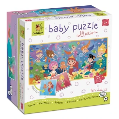 Set de 8 rompecabezas infantil de 4 piezas para niños y niñas de 2 años Puzzles de grandes piezas, impresas a doble cara. Se pueden montar 8 puzzles pequeños o un gran puzzle de 32 piezas con un motivo único Ilustraciones de gran calidad, a todo color, con motivos de Sirenas y del fondo marino La colección Dudù Baby Puzzle Collection es ideal para adentrarse en el mundo de los puzzles e ir evolucionando en dificultad al montar el puzzle grande con todas las piezas. Ludattica es una marca italiana, fundada en 1970 por 2 pedagogos y basada en 5 valores fundamentales: originalidad, coherencia, rejugabilidad, ecología y calidad. De este modo, todos sus productos están hechos en Italia y destacan por su alto valor educativo y su diseño único., Fabricante: Ludattica