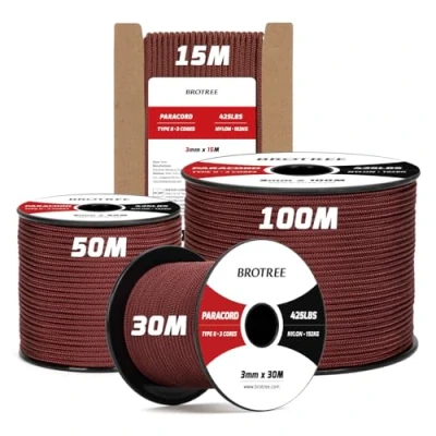 Brotree Paracord 3mm 15M Cuerda 100% Nylon Tipo II 3 Hebras 425 para Exterior, Bricolaje 192 kg Carga de Rotura (Marrón Chocolate)