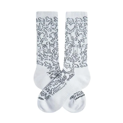 Celebra la creatividad y todo lo que nos une con nuestros calcetines Athletic Keith Haring Community. Cubiertos de pies a cabeza con las icónicas figuras danzantes de Keith Haring, estos calcetines cómodos son perfectos para expresar tu amor por el arte con un estilo relajado.Colección: Keith Haring x Jimmy LionComposición: 78 % algodón orgánico*Estilo: deportivoLongitud: media cañaCalcetines blancos de estilo deportivo cubiertos con las icónicas siluetas danzantes de Keith Haring.