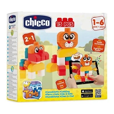 El niño puede disfrutar creando y jugando con los mejores amigos del hombre del set #Perro&Gato. El juego consta de 15 ladrillos de colores Enmarcando el ladrillo especial decorado, el niño puede descubrir los magos de la realidad aumentada reproducida en 3D en tabletas o teléfonos inteligentes, Fabricante: Mondo S.P.A.