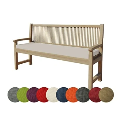chilly pilley Cojín para Banco Cremallera con Trabillas De Jardín (180 x 40 5 cm, Color Crema)