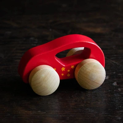 ¡Burrum, burrum! El pequeño coche de madera rojo rueda velozmente mientras las manitas de los más pequeños lo acompañan. Un coche hecho especialmente para ser el primer juguete sobre ruedas de casa. Resistente y perfecto para soportar los golpes de las manitas principiantes. Precio por unidad.