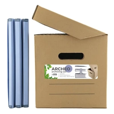 D.RECT Caja de Archivo ARCHEO con 3 archivadores Zero Max Set 250x340x260 mm Tapa abatible Pastel Azul Oficina y hogar