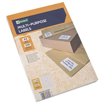 Las etiquetas D. RECT están disponibles en muchos formatos para satisfacer todas sus necesidades: identificación de documentos, listas de precios, pegatinas de direcciones, etc. Adecuado para todas las categorías de impresoras de inyección de tinta, impresoras láser y copiadoras. 100 hojas por paquete, 51 etiquetas por hoja, es decir, 5100 unidades en total. Color: blanco Etiquetas autoadhesivas universales D.RECT.