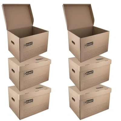 Estabilidad máxima con construcción HD 420 g/m² – Fabricadas con cartón ondulado de 3 capas, paredes triples y base doble, estas cajas ofrecen una resistencia excepcional para archivar y transportar material pesado sin deformación. Gran capacidad para sistemas completos de archivo – Con 431 × 333 × 294 mm, cada caja puede almacenar 4 cajas de 100 mm, 5 cajas de 80 mm, 5 carpetas de 75 mm o 7 carpetas de 50 mm, optimizando el espacio en oficinas, almacenes y archivadores. Protección duradera gracias al material libre de ácido – El pH alcalino evita amarilleo, humedad y envejecimiento, garantizando una conservación de largo plazo para documentos, carpetas y cajas archivadoras. Tapa integrada para seguridad y comodidad – La tapa fija protege contra el polvo, estabiliza la estructura y facilita el apilado. Las asas amplias permiten levantar y mover cajas llenas de forma segura y sin esfuerzo. Opción sostenible y apta para archivo profesional – Materiales certificados FSC, fabricados con recursos renovables y campos de etiquetado impresos para un sistema de clasificación rápido, ordenado y profesional.