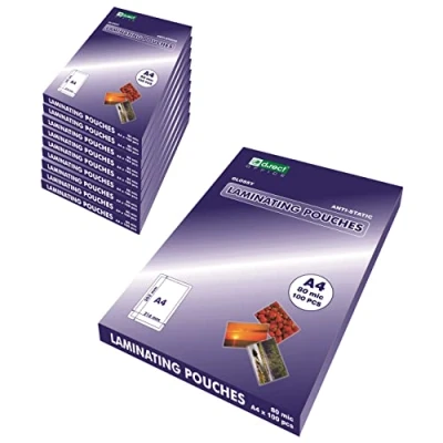 Lámina laminada en caliente A4/80 micras, da brillo y rigidez a los documentos Protege contra el agua, la humedad, la suciedad y los daños mecánicos Mejora el efecto de color de las fotos y documentos laminados y permite crear presentaciones atractivas Antiestático, brillante Formato A4 (216 x 303 mm); juego: 10 x 100 unidades