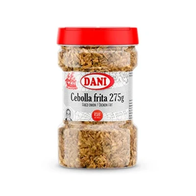 Cebolla frita 275 gr Añade sabor a tus ensaladas y sirve de acompañante o adorno de muchas elaboraciones como los perritos calientes o las hamburguesas Alérgenos: contiene trigo (gluten) Con tapón dosificador