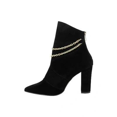 Elegantes botas de tobillo Hecho de suave ante Cadenas doradas con candado Colgante de cremallera dorado Tacón de bloque alto