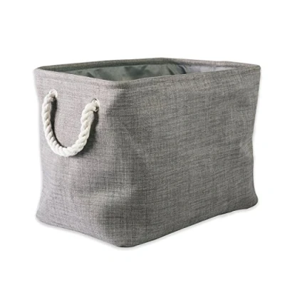 DII, Cubo de almacenamiento plegable poliéster abigarrado con asas algodón, tamaño pequeño, color gris