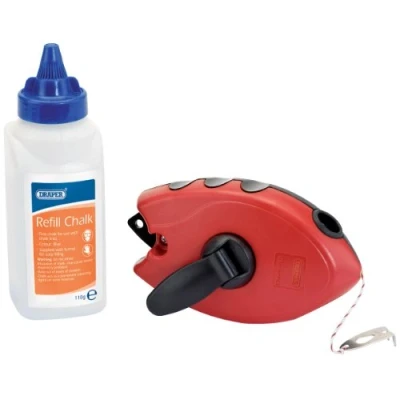 Cuerpo de ABS con orificio de llenado y plegar manivela Self chalking Line (media longitud 20 m) con extremo de metal soporte Suministrado con botella de plástico 110 g de tiza azul Fabricados por Draper Tools para kapro Draper garantizada producto, Peso: 0.771617917 Libras, Fabricante: Draper Tools