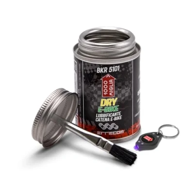 Bote con cepillo incluido para garantizar una lubricación completa y sin desperdicios. Lubricante para cadenas de bicicletas eléctricas de alto rendimiento, formulado para hacer frente a las altas cargas par aplicadas a la transmisión de una bicicleta eléctrica. Específico para lubricar la cadena de la bicicleta eléctrica en condiciones de sendero seco y con polvo Penetra profundamente en los eslabones de la cadena asegurando una lubricación resistente y duradera. Recomendado para viajar largas distancias. Reduce la fricción y el desgaste de la cadena asegurando cambios de marcha suaves y silenciosos, incluso en condiciones extremas. Mejora la eficiencia del pedaleo. Formulado para proporcionar protección adicional contra contaminantes y corrosión. Fórmula fluorescente: lubricantes visibles cuando se exponen a cualquier luz ultravioleta para verificar la lubricación adecuada de la cadena. Perfumado: garantiza un agradable aroma post-mantenimiento en el ambiente donde se guarda la bicicleta