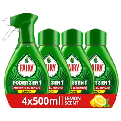 EVITA DEJAR EN REMOJO con el nuevo spray Poder Sin Remojo de Fairy, una forma más rápida y sencilla de pretratar tus platos para conseguir una limpieza impecable EL PODER DE UNA NOCHE DE REMOJO EN MINUTOS. Su fórmula exclusiva facilita y agiliza el tratamiento previo de los platos, para que disfrutes del poder de una noche en remojo en cuestión de minutos SOLUCIÓN ÚNICA PARA VAJILLA Y COCINA. Solo tienes que retirar los restos de comida y rociar el spray directamente en los platos antes de colocarlos en el lavavajillas, o directamente en el lavavajillas, y añadir tu cápsula lavavajillas de siempre Pulveriza los platos sucios y lava a mano. Para restos de suciedad pulveriza el spray y limpia sin necesidad de agua hasta el aclarado. Para manchas más difíciles, deja que el spray actúe durante unos minutos antes de limpiar. Usalo en toda la cocina PULVERIZADOR REUTILIZABLE: el spray Fairy Poder Sin Remojo viene con un pulverizador reutilizable que puedes retirar y sustituir en la botella de recambio