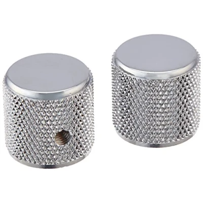 Botón plano estriado Se adapta a potenciómetros de eje sólido de ¼” No está incluido el tornillo Los modelos cromados se venden en pareja y los dorados individualmente