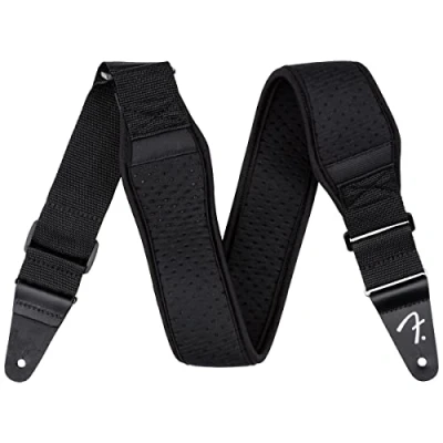 Para ti: 1 correa de neopreno Fender > Bassman< - 2.5 pulgadas de ancho - negro Tu uso: diseñado para la máxima comodidad, para uso con instrumentos más pesados Tu rendimiento: la almohadilla de neopreno alivia el peso de tu espalda y hombros Los mejores materiales: malla de neopreno – extremos de cuero en forma de cono con logotipo "F" Mejor calidad: correas originales para guardabarros