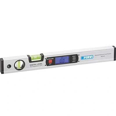 Magnético con cuerpo de aluminio y base fresada, autoapagado, pantalla retroiluminada, 2 ampollas, función "HOLD", búsqueda de 0 ° y 90 ° de sonido, lectura absoluta y relativa, grados, porcentaje, mm/M y IN/FT, bolsa de transporte. Longitud 400 mm Autoapagado 5 min Rango de medición 0-90° x 4 Resolución 0° & 90°: 0,05°; 0° - 89°: 0,1° Precisión nivel 0° & 90°: ±0,05°; 0,1° - 89,9°: ±0,2° 2 pilas AAA de 1,5 V. Peso: 0,6 kg., Peso: 0.440924524 Libras, Fabricante: Fervi srl