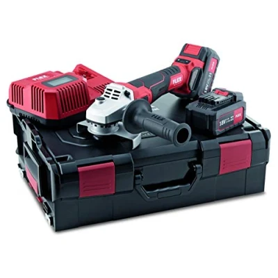 Potente amoladora angular inalámbrica con velocidad variable y freno – detiene la herramienta en 3 segundos Motor sin escobillas con mayor eficiencia y vida útil más larga Electrónica de microprocesador con arranque suave, reinicio después de apagón, control de temperatura, protección contra sobrecargas, electrónica constante CDC Detalles técnicos: Voltaje de la batería 18 V/Capacidad de la batería 5,0 Ah / Máx. Cuerpo de lijado Ø 125 mm / Velocidad de ralentí 3500 / 4500 / 6500 / 9000 /min Incluye una cubierta protectora, un mango, una tuerca de sujeción, dos baterías recargables (5,0 Ah), un cargador, un maletín de transporte y otros accesorios, Peso: 4.078551847 Libras, Fabricante: FLEX