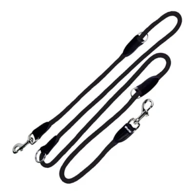 Práctica y versátil correa multiposición de adiestramiento para perros De largo especial y muy útil para iniciar a tu perro en el adiestramiento básico Tres posiciones diferentes Puede usarse para pasear a dos perros Se puede poner alrededor del cuerpo, para dejar las manos libres