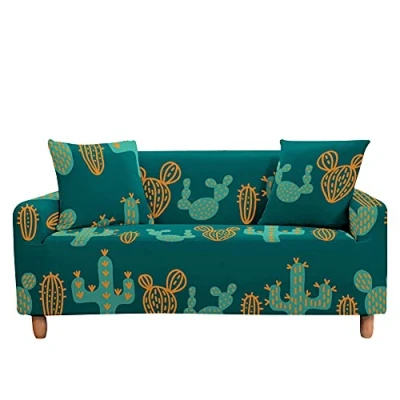 Highdi Cactus Impresión Fundas para Sofá, 3D Funda de Sofá Elástica 1/2/3/4 Plazas, Universal Cubre Sofas Ajustables Protector Cubierta Muebles (Verde Oscuro,3 plazas)