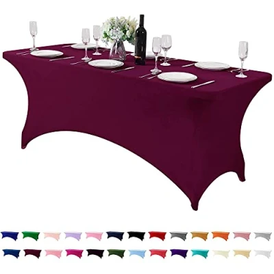Highdi Manteles de Spandex Rectangulares, Cubierta Mesa Elástica Lavable a máquina Resistente Las Arrugas para Boda, Hotel, Comedor, Fiesta, decoración (Burdeos,6FT)
