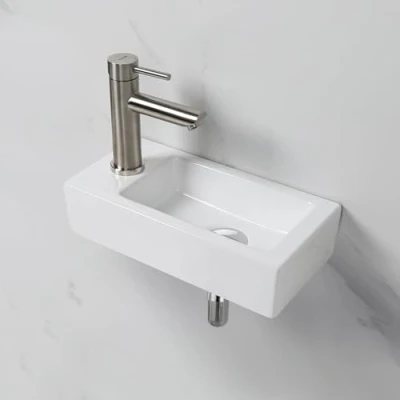 Ibergrif, M41102 L Lavabo de Cerámica Rectangular con 1 Orificio para Grifo, Mano Izquierda Montado en la Pared, Tamaño Pequeño: 376 x 188 93 mm, Blanco