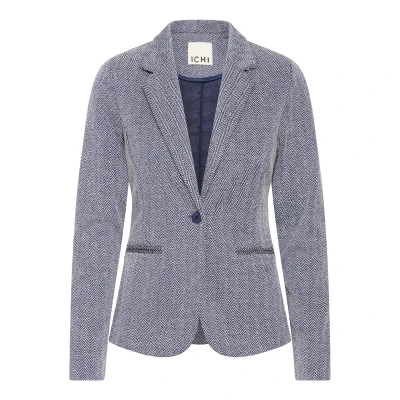 ICHI KATE Jacquard Blazer, Mujer, Talla: Medium, Patriot blue herringbone