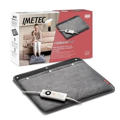 Imetec Calientapiés, Tecnología Intellisense, Tejido Suave, Control Digital de 5 temperaturas, Apagado automático, Dispositivo Seguridad Electro Block, Funda Lavable a máquina, 48x50 cm