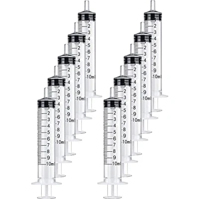 El paquete incluye: 10 jeringas de plástico de 20 ml Ventaja: la báscula de jeringa es clara, fácil de leer. Características: cada jeringa está hecha de plástico y goma de buena calidad, limpia, segura, duradera, impermeable y reutilizable; la báscula de jeringa es clara y precisa. Aplicación: estas jeringas de plástico son adecuadas para el almacenamiento de aceites esenciales, perfumes, lubricantes, selladores, etc. También es adecuado para el almacenamiento de tintas industriales o como una herramienta para alimentar a animales Nota: las jeringas son solo para uso industrial, las agujas no están incluidas en este paquete.