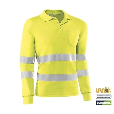 Juba Polo manga larga 100% poliéster de 140 g/m², con bandas reflectantes, Amarillo flúor SIZE: 3XL
