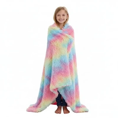 Kanguru Rainbow, Manta de Forro Polar, Suave y Multicolor Arcoiris, Plaid Cama, Sofa cálida con Pelo Largo, Efecto Pelo, Faux Fur. Colcha Individual 130 x 170 cm, Rosa.