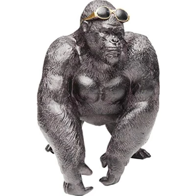 Hecho a mano: La escultura finamente elaborada en negro está hecha a mano Atrae las miradas: equipado con gafas de sol y bañador, el gorila lleva la diversión al salón Look selvático de moda: colocado entre plantas verdes, el mono aporta un ambiente exótico a tu hogar Idea de regalo original: el gorila es un regalo adecuado para individualistas con inclinación por las decoraciones inusuales Representación muy detallada: la figurita de piedra artificial está detallada hasta el fino dibujo del pelaje
