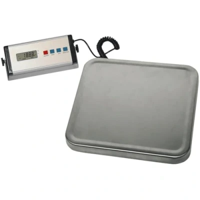La báscula de mesa es adecuada para diferentes áreas de la casa y el patio La báscula tiene una gran plataforma de acero inoxidable (tamaño 330 x 320 mm) Con función de apagado automático (desactivable) La unidad de visualización tiene un soporte de pared y se puede colocar libremente gracias al cable en espiral Detalles técnicos: división de pesaje (d) 50 g/rango de pesaje 1-150 kg