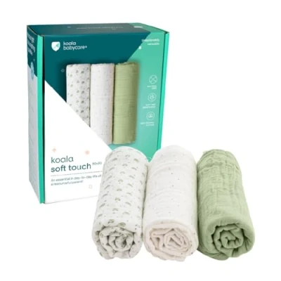 MULTIUSOS: Las muselinas para bebés de Koala aparecen como por arte de magia justo cuando las necesitas y su tamaño las hace estupendas para muchos usos diferentes, empezando como sabana para cuna, sillita de paseo, carrito, silla del coche. TOALLAS Y DOUDOU: Tamaño perfecto y absorbencia ideal para secar al bebé después del baño, o siempre que necesites una toalla. Además, se convertirán en poco tiempo en el Doudou favorito de tu bebé, que lo tranquilizará y lo calmará. SÚPER SUAVES, LAVADO TRAS LAVADO: Hechas de algodón orgánico 100% , suaves y transpirables, son delicadas con la piel del bebé. Fáciles de lavar, se mantienen suaves como si fuesen nuevas después de múltiples lavados a máquina. FUNDA PARA EL CAMBIADOR: Las muselinas para bebés Koala Soft Touch son imprescindibles para los nuevos padres y para la vida en movimiento. Utilízalas como toallitas reutilizables para el cambio de pañal o como funda protectora para el cambiador cuando estés fuera de casa. EL REGALO PERFECTO: Las muselinas de algodón Koala son un auténtico imprescindible para el bebé, ya que están fabricadas con algodón de alta calidad y ofrecen un diseño original y elegante que gusta tanto a los mayores como a los más pequeños. Por esto, son el regalo perfecto para los papás y mamás
