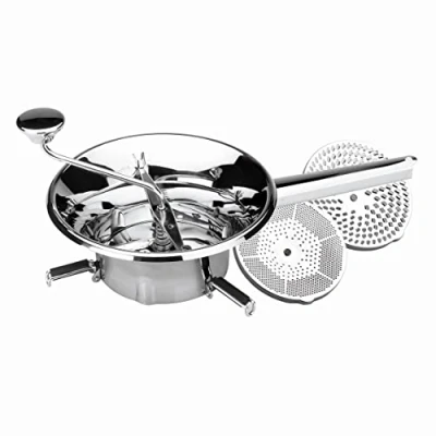 1 año garantía de devolución Dimensiones: 31 x 7,4 x 12 cm Fabricado en acero inoxidable Para hacer purés, sopas y guisos Viene con 3 rejillas diferentes