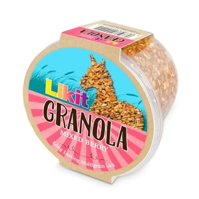 HypostoreTasty lick with delicious berry flavour. This lick contains corn, grain, barley and oat flakes, among other ingredients. The Likit Granola has user-friendly packaging that is fully recyclable. It is suitable for the Likit Boredom Breaker and the Likit Holder.
