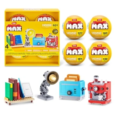 COLECCIÓNALOS TODOS: ¡Hay 4 diseños diferentes para coleccionar, construir y exponer! ¡La tostadora, atril para libros, cafetera y lámpara! COMPATIBLE CON MARCAS LÍDERES: Los bloques MAX Build More Premium son compatibles con marcas líderes de bloques, siendo una adición perfecta para cualquier colección. VALOR PREMIUM: MAX Premium ofrece bloques de alta calidad con gran cantidad de piezas, proporcionando un valor excepcional. ELEMENTOS INTERACTIVOS: Cada diseño presenta un elemento interactivo único, haciéndolos divertidos de construir, jugar y exponer. Hasta 181 piezas MAX Premium en cada cápsula para construir 1 diseño retro. Incluye instrucciones fáciles de seguir., Fabricante: ZURU