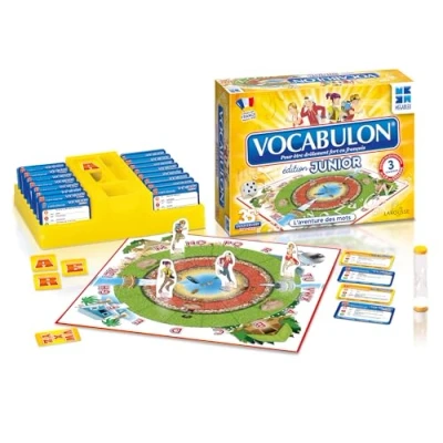 JUEGO DE AVENTURA: Cuatro jóvenes aventureros (Lisa Lagon, Suzie Safari, Jeannot Techno y Benji Capvert) se embarcan en un curso para constituir su palabra mágica que será sésamo para entrar en su casa. JUEGO DE ENIGMAS: En el camino, cada jugador debe resolver acertijos para ganar cada una de las letras de su palabra mágica. JUEGO EDUCATIVO: Así, el niño descubre y memoriza de una manera agradable y rápida el significado, la ortografía y los sinónimos de más de 1.500 palabras clave elegidas en los diccionarios juveniles LAROUSSE. 3 NIVELES DE JUEGO: CP, CE1/CE2 y CM1/CM2. Contenido: 1 bandeja, 1 dado, 1 reloj de arena, 4 peones, 64 cartas, 264 cartas, 1 soporte de almacenamiento, 1 prospecto., Fabricante: Megableu