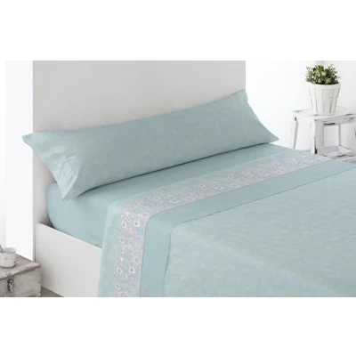 Miracle Home. Juego de sábanas Roda. Set 3 Piezas, sábana Bajera Ajustable, encimera y Funda Almohada. Anti Peeling. 50% algodón Microfibra cepillada. Azul. 105 x 200. Cama