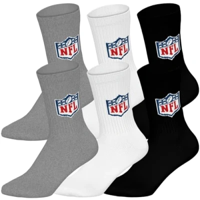 Varios tamaños y colores: los calcetines con logotipo de NFL están disponibles en varios tamaños y colores. Así, los fanáticos tienen la garantía de encontrar el ajuste perfecto y la elección de color para complementar su estilo. Material de alta calidad para máxima comodidad: fabricado con 61% algodón, 35% poliéster y 4% elastano, los calcetines proporcionan una comodidad transpirable y mantienen su forma incluso después de un uso prolongado. Mercancía oficial de la NFL para verdaderos fans: estos calcetines son mercancía oficial de NFL y garantizan un acabado de alta calidad y un diseño auténtico, ideales para los fieles fans y coleccionistas de la NFL. NFL Logotipo: los calcetines cuentan con el logotipo oficial de la NFL y combinan estilo y amor por los fanáticos. Ideal para mostrar tu entusiasmo por la liga en cualquier momento, ya sea en casa o en el estadio. Cuidado fácil y duradero: los calcetines NFL son lavables a máquina hasta 40 grados y mantienen su forma y color incluso después de múltiples lavados, lo que los convierte en el compañero duradero para los fanáticos de la NFL.