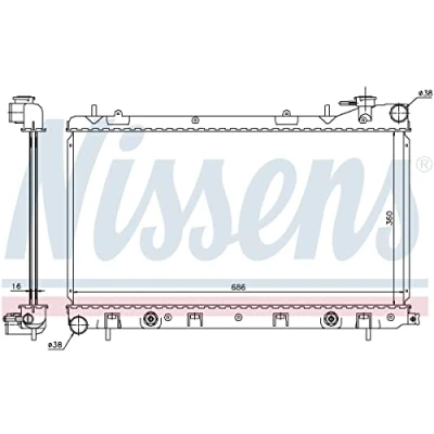 NISSENS 67728 Radiador, refrigeración del motor Aluminio 360 676 16 Aletas soldadas SUBARU: Forester II