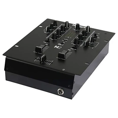 Numark M2 Mezclador de DJ 2 canales para scratch, instalable en rack, con EQ 3 bandas, entrada micro y crossfader reemplazable controles inversión curva