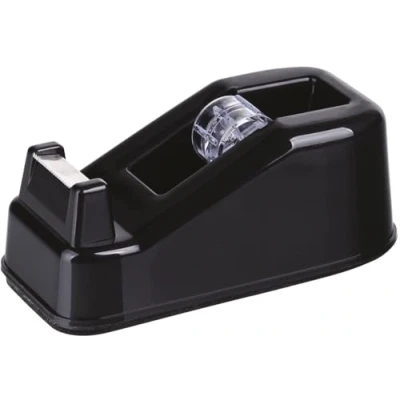 AmazonOffice Products 18228511-05 - Dispensador de cinta adhesiva, 12,5 x 6,5 x 5,5 cm, color negro. De plástico Dispensador de cinta adhesiva estable y pesado Diseñado para cintas con un ancho máximo de 19 mm y una longitud máxima de 33 m Ideal para el trabajo o el hogar Su forma ergonómica permite arrancar la cinta adhesiva con una sola mano