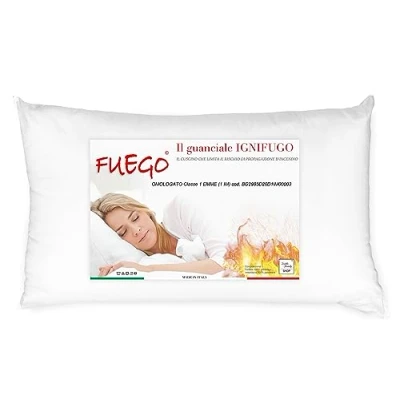 Almohada - cojín ignífugo que permite limitar el riesgo de propagación de incendios bloqueando la rápida expansión de las llamas. Relleno ecológico fabricado íntegramente en capa cardada de copos de poliéster que garantiza suavidad, elasticidad y volumen con el tiempo. Medidas: 50 x 80 cm y tiene un grosor de aproximadamente 10/12 cm. Resulta muy suave y se puede lavar a máquina @@@tS4Tbr58alqCPHoElvSqMo5QHZ1xLmU5@@@ para todas aquellas estructuras como hoteles, b&b, agritursmos, comunidades, etc. donde se requiere la certificación según la ley. Posibilidad de coordinar el cojín ignífugo con las mantas y cubrecolchones de nuestra producción. El cojín FUEGO es un producto completamente fabricado en Italia