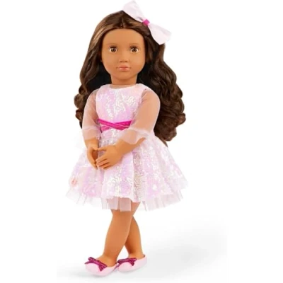 Muñeca de moda de 46 cm: ¡brilla en cada aventura lúdica con Katia, la muñeca de 46 cm de Our Generation! Características detalladas: Los ojos color avellana de Katia se abren y cierran, y su cabello castaño claro ondulado se puede peinar de muchas maneras. Fácil de jugar: Tiene un cuerpo blandito y abrazable con cabeza, brazos y piernas móviles para cambiar fácilmente de atuendo. Moda infantil: Katia viene con un vestido brillante, un lazo de gran tamaño para el pelo, un par de braguitas y unos bonitos zapatos con lazos en los dedos. Mezcla y combina: La ropa de muñeca tiene cierres fáciles de abrir para poner y quitar rápidamente mientras los niños exploran la imaginación y la autoexpresión. Compatible con la mayoría de muñecas de 46 cm, ropa y accesorios para muñecas., Fabricante: Maison Battat Inc.
