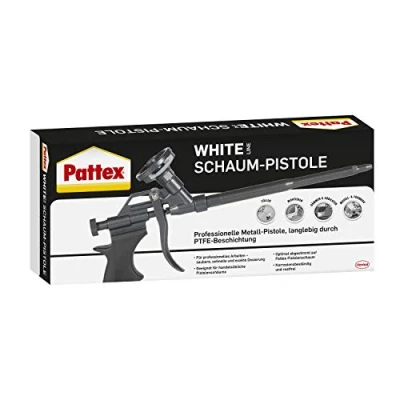 Para espuma y limpiador – La pistola de espuma de construcción es adecuada para espuma de pistola Pattex White Line, limpiador de pistolas de espuma y espuma de pistola comercial. Dosificación óptima: gracias a la válvula de aguja integrada, se puede obtener una dosificación limpia, rápida y precisa. Ideal para rellenar, montar, sellar, modelismo, etc. Regulación individual: un tornillo de dosificación permite ajustar el grosor de la cuerda de la espuma. Así se rellena cada columna sin que la espuma de montaje se derrame. Revestimiento duradero: la pistola de espuma está cubierta con un revestimiento de PTFE que la hace resistente a la corrosión y al óxido, lo que la hace muy duradera. Práctico paquete – Pistola de espuma Pattex White para espuma de pistola Pattex y limpiador de pistolas de espuma Pattex White Line, pistola de espuma para una aplicación precisa de espuma de poliuretano.