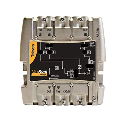 Amplificador de 15 dB Tiene 3 puertas Caja de color negro metalizado Adecuado para TV